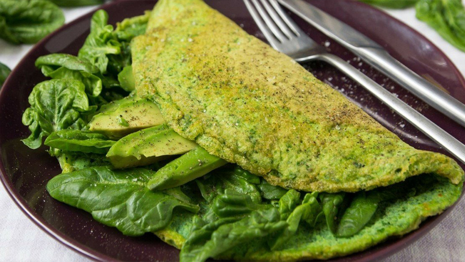 ek I njëjti tigan shtojmë lugën tjetër të vajit dhe hedhim vezët, të cilat I kemi rrahur më parë të gjitha sëbashku. I lëmë për 3-4 minuta dhe me shumë kujdes, pa prishur formën I kthejmë nga ana tjetër duke I lënë edhe për dy minuta. Pasi ta shikoni me sy që veza është gati e heqim nga tigani dhe e vendosim në një pjatë. I shtojmë specat dhe spinaqin e përgatitur më parë, plus avocado e prerë në copa të vogla. E “mbyllim” omletën dhe sipër I hedhim një lugë pesto, të cilën e hapim në gjithë sipërfaqen.